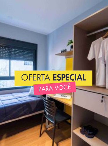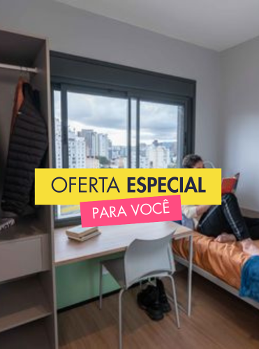 A nossa estrutura é um de nossos grandes diferenciais. Nossos apartamentos e studios são mobiliados, prontos para morar sozinho ou compartilhar. Você só precisa trazer a sua mala e deixar o espaço com a sua cara! *Os valores mensais dos studios e apartamentos compartilhados são por pessoa.